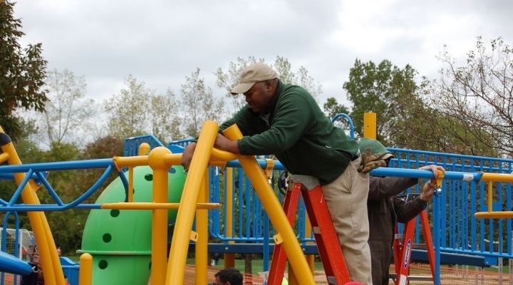 Pemasangan playground Taman bermain playground merupakan sebuah tempat yang dibuat secara khusus untuk anak-anak bermain. Meski playground ditujukan untuk anak-anak, beberapa taman bermain playground menargetkan